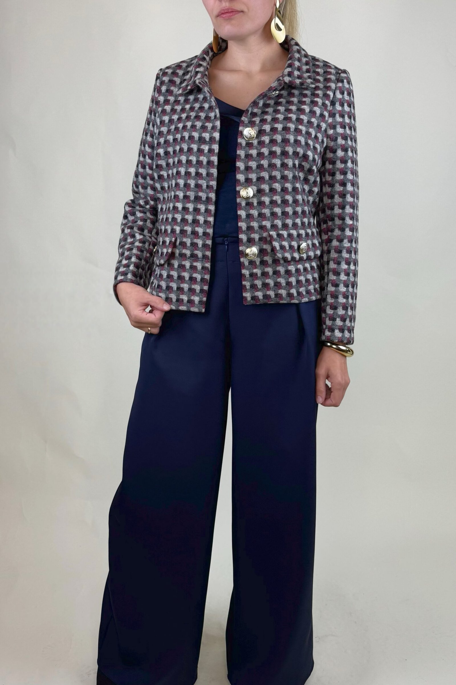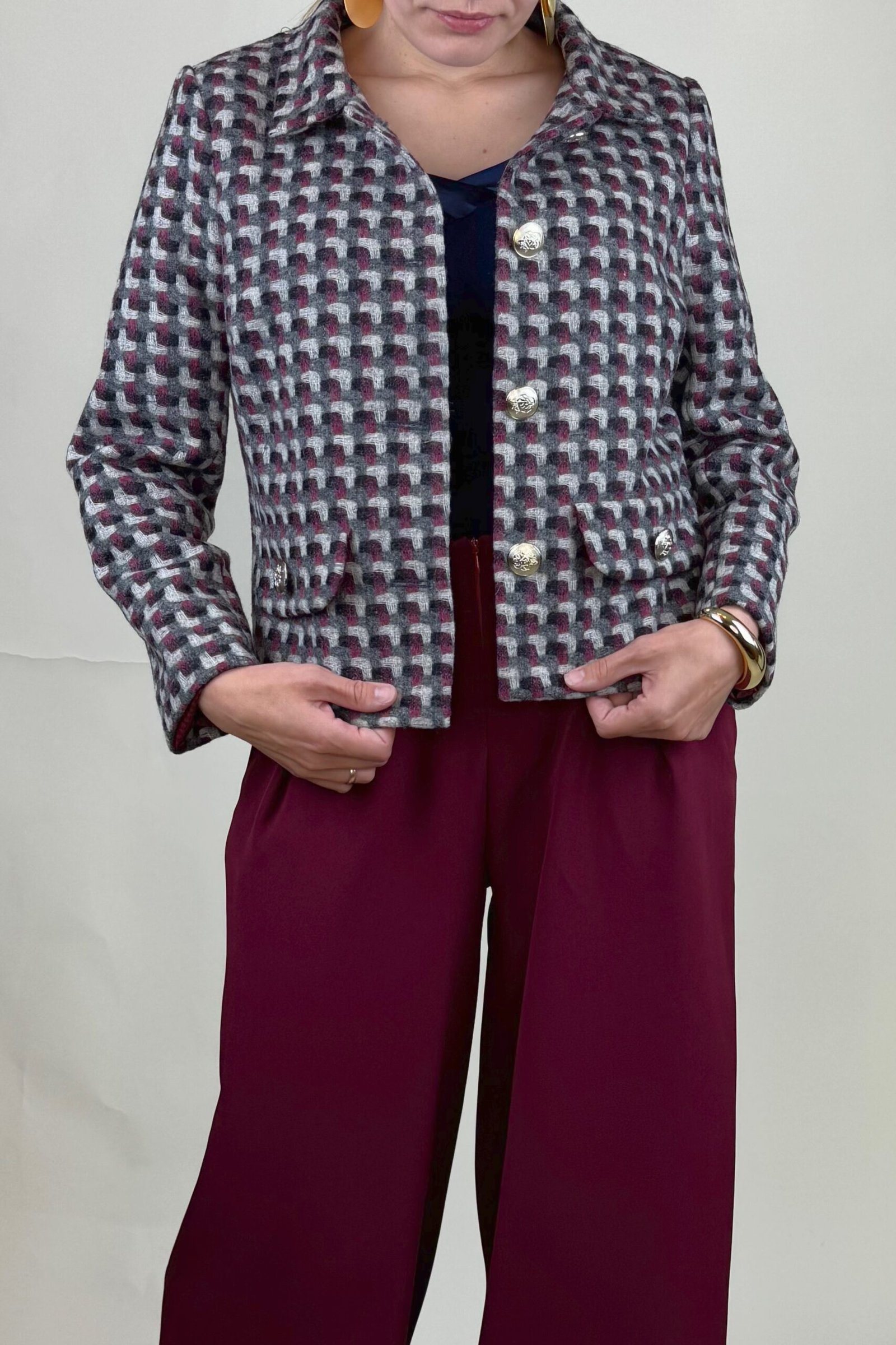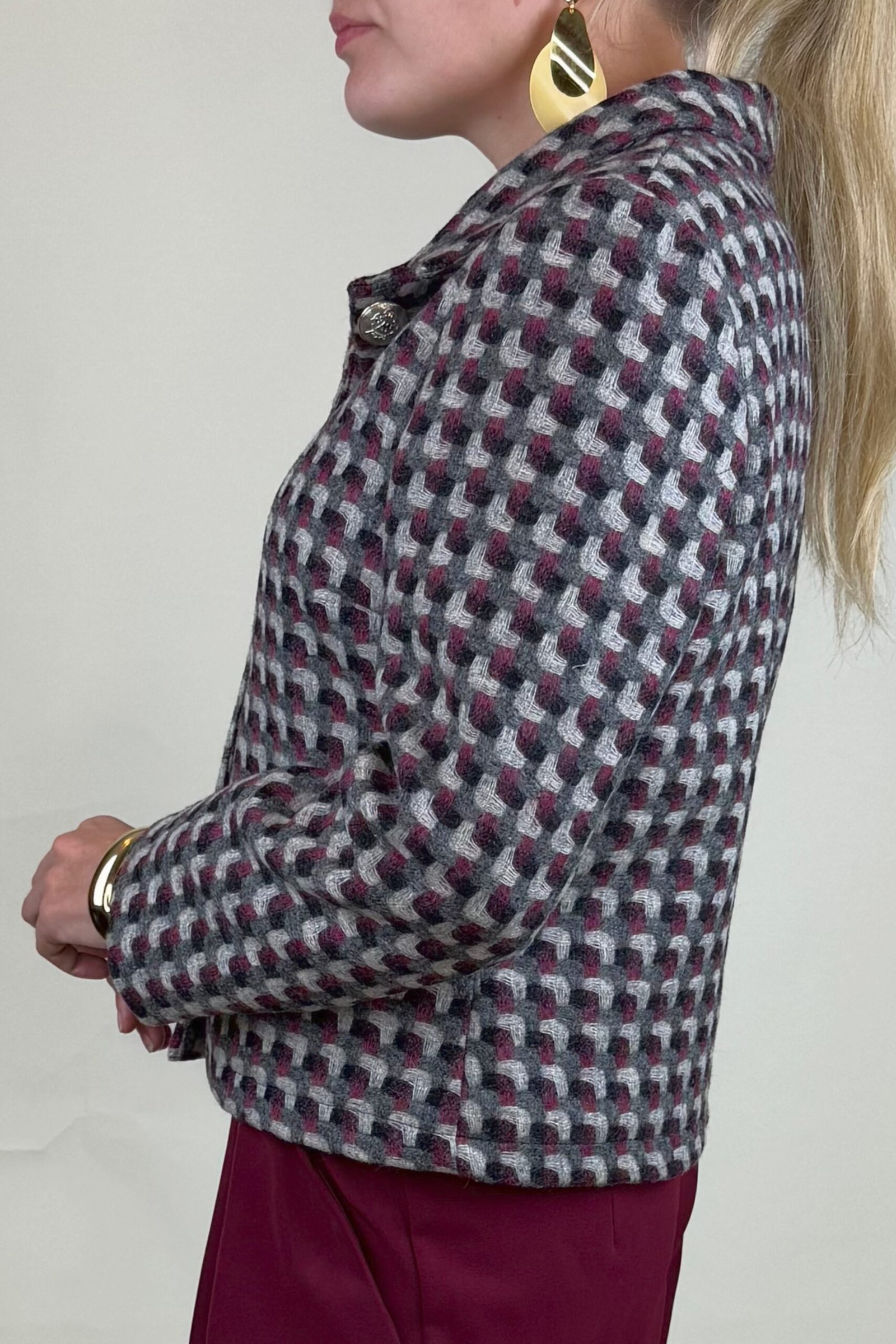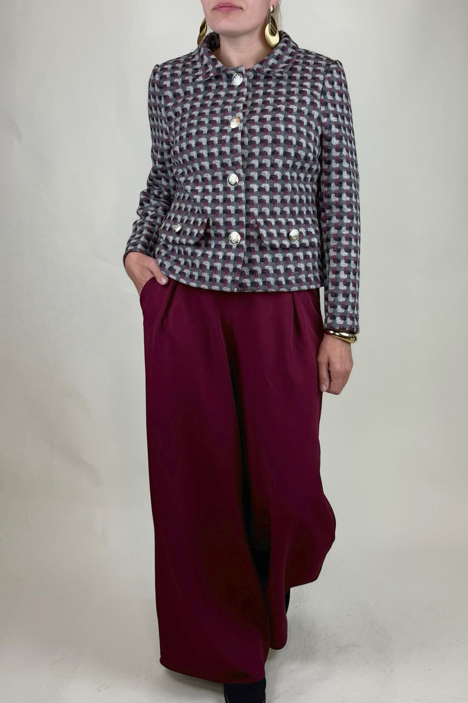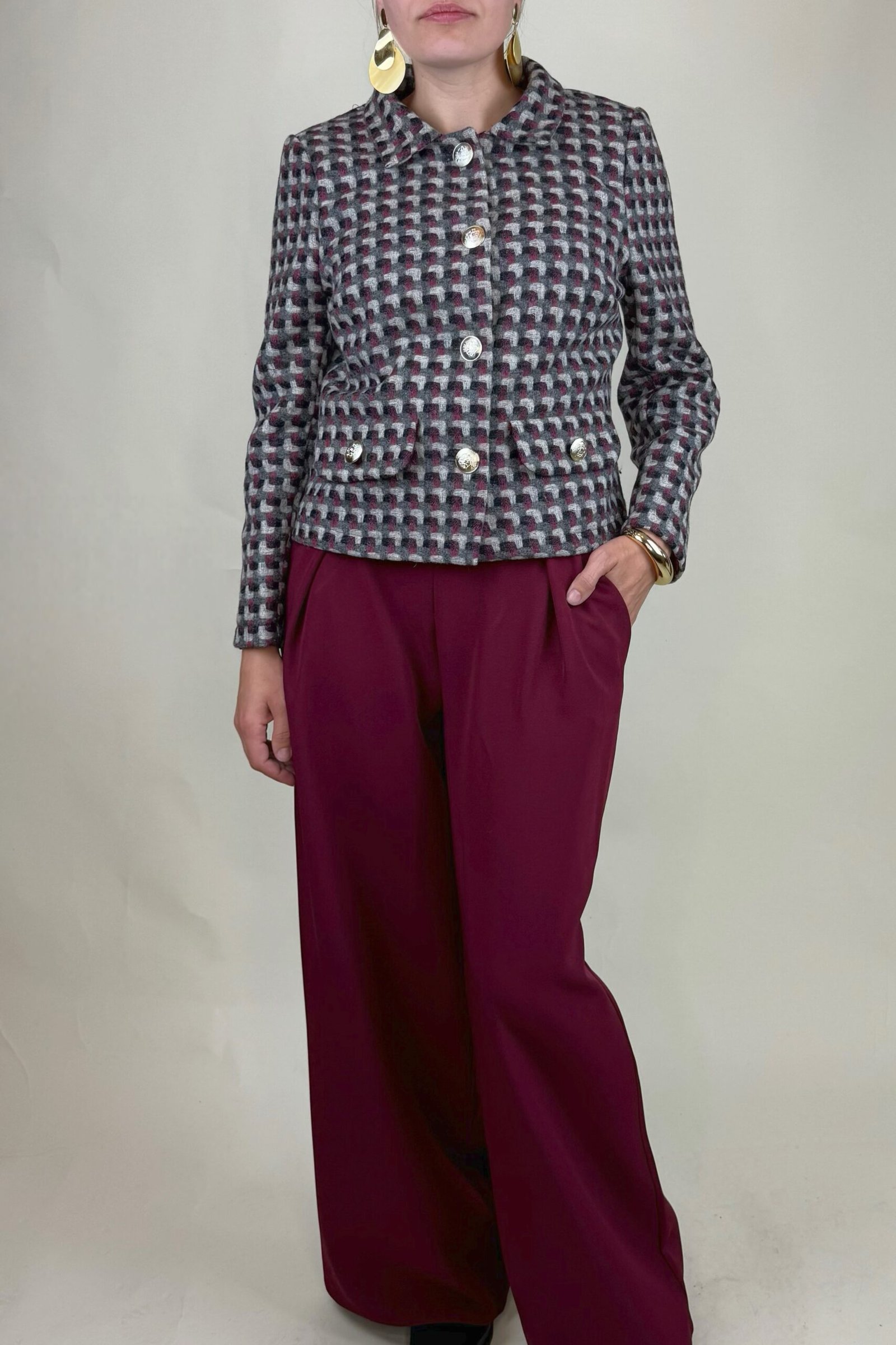Švarkas su pamušalu, pasiūtas iš bukle tipo audinio, jis yra minkštas, natūralios sudėties(vilna), malonus nešiojimui.