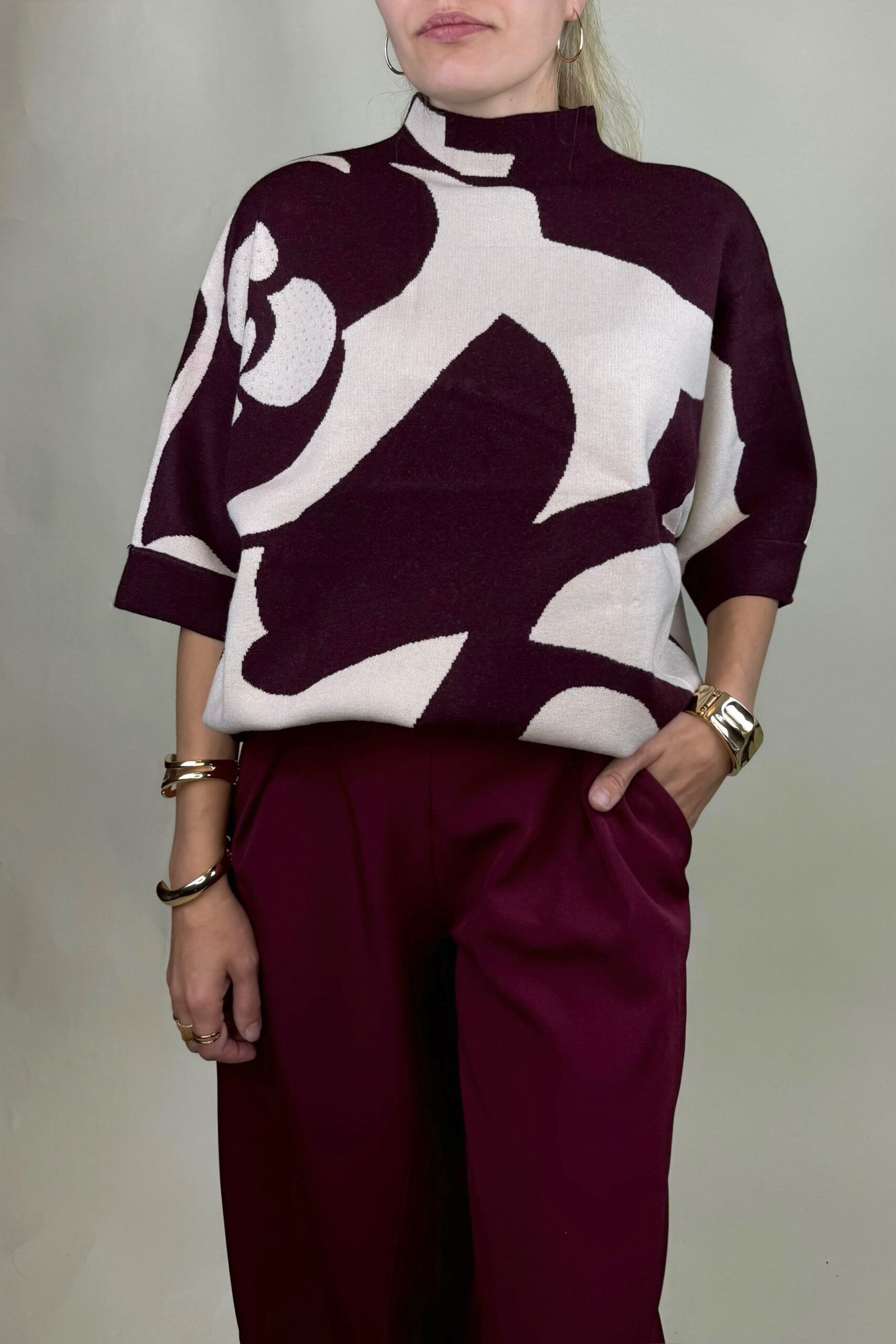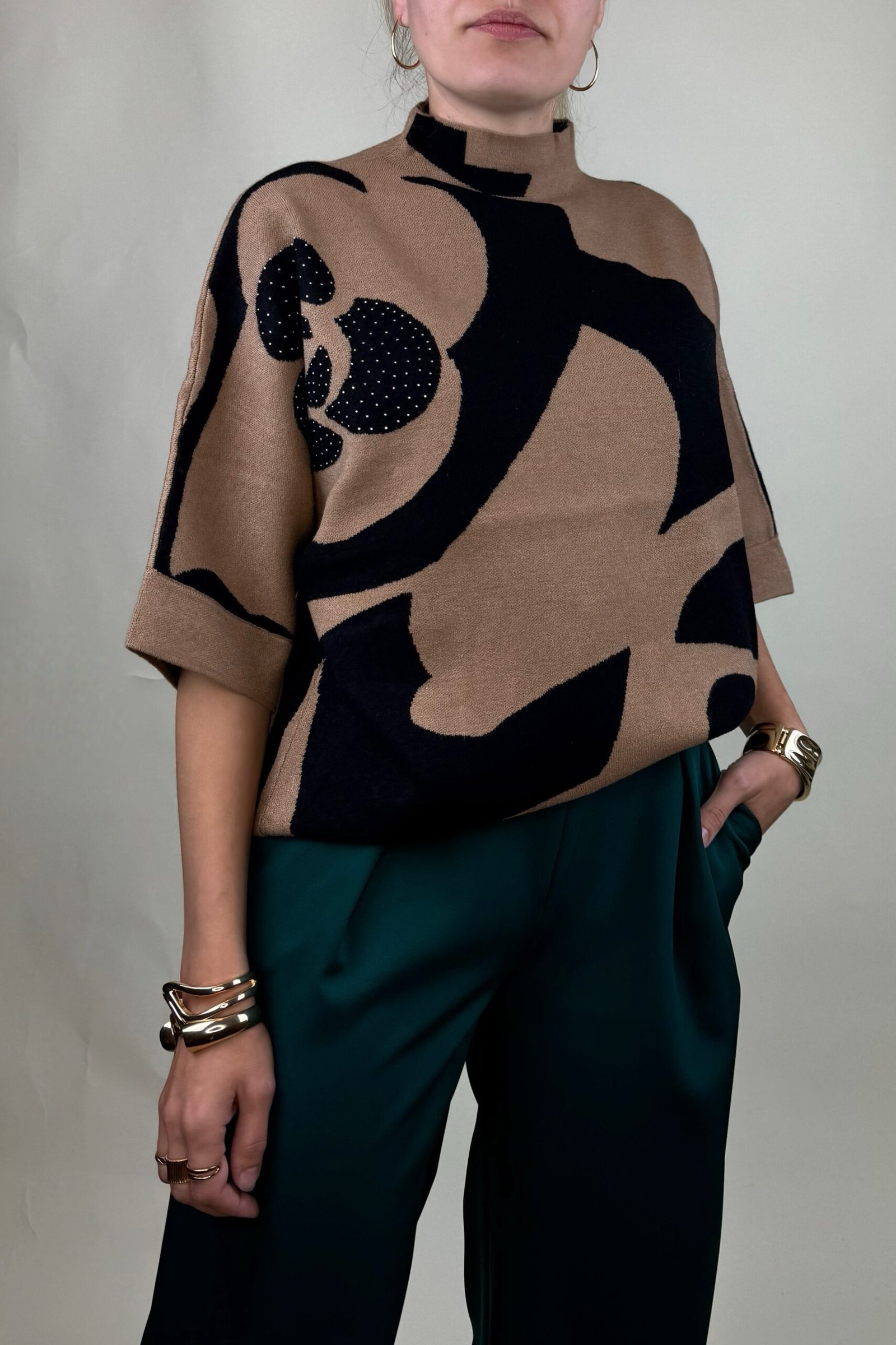 Komplektą sudaro: megztinis/palaidinė